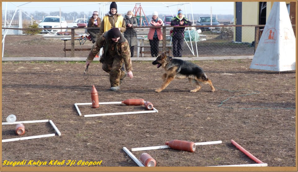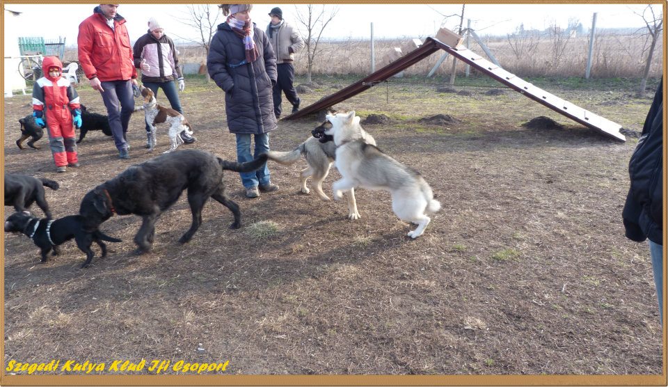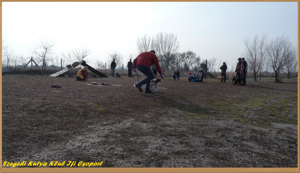 Mint már említettem, ősszel elvállaltuk a Kölyök Klub/ovi vezetését Mónival. Nem egy egyszerű feladat, az alig 10 hetes és a már majdnem alapfokra érett 6-7 hónapos kutyákat mindenki számára élvezhető közegben tartani. Figyelni kell a méretbeli, temperamentumbeli különbségekre. Eddig még nem volt alkalom arra, hogy a fent említett okok miatt szétszedjük a csoportot, mert megoldhatatlanná vált volna a helyzet. Remélem nem is lesz rá szükség. Elsősorban itt a célunk, hogy a gazdák jól érezzék magukat valamilyen szinten irányított közegben. Jobban megismerhessék kutyájuk jellemét, és pár alapvető engedelmes feladatot elsajátíthassanak.