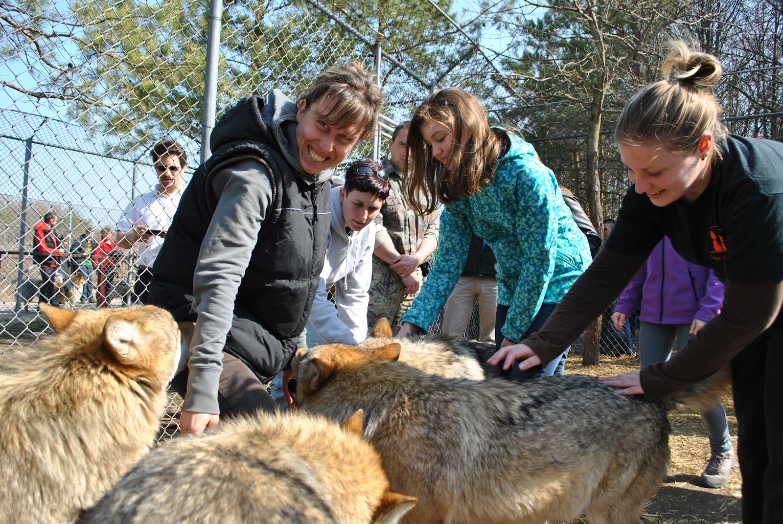 | Gabi, Kitti, Móni is élvezte a farkasok társaságát 🙂 |