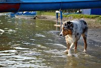 Én is lebuktam… most Jamie is, beljebb vittem olyan helyre, ahol már tutira nem ér le a lába, és jelentem a kutyám tud úszni, elég jól. Hátrányban a farkatlansága miatt van csak. Nem tud olyan könnyedén irányt változtatni, mint pl. a retriever, de hát ők az úszásra, vízre lettek kitenyésztve!
