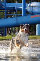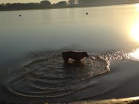 Péntek: Kelés: 5:40, Orsiék felvétele: 6:00 Most én is húztam fürdőrucit, mert ki szerettem volna próbálni milyen is Jamievel a kicsit mélyebb vízben lenni. HAHA, és rájöttem az úrfi gyorsaságának rejtélyére!!! Addig nagyon gyors, amíg a hátsó lába leér a homokba, mert addig annak segítségével úsztatja magát, persze mellső lábaival úszó mozdulatokat végez. Én is hasonlót adtam elő régen úszás oktatás alatt, mellúszás csak karral imitálva, lábammal meg sétálva a medencében.