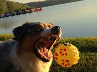 Hétfő: Abban a szerencsében volt részünk, hogy kint alhattunk a tón Dáviddal, Jamievel anyumék nyaralójában. Elmentek nyargalászni, így miénk volt a nyaraló egy hétig. Ilyenkor naná, hogy az ember kihasználja, hogy egy tó közelében van!!!! Reggel 6:15kor lementünk a partra, ahol Jamie kiélvezte magát. Volt itt labdázás, pancsolás, egy kis engedelmes munka. Mikor gyakoroljon az ember a kutyájával, ha nem a korai órákban?! 🙂