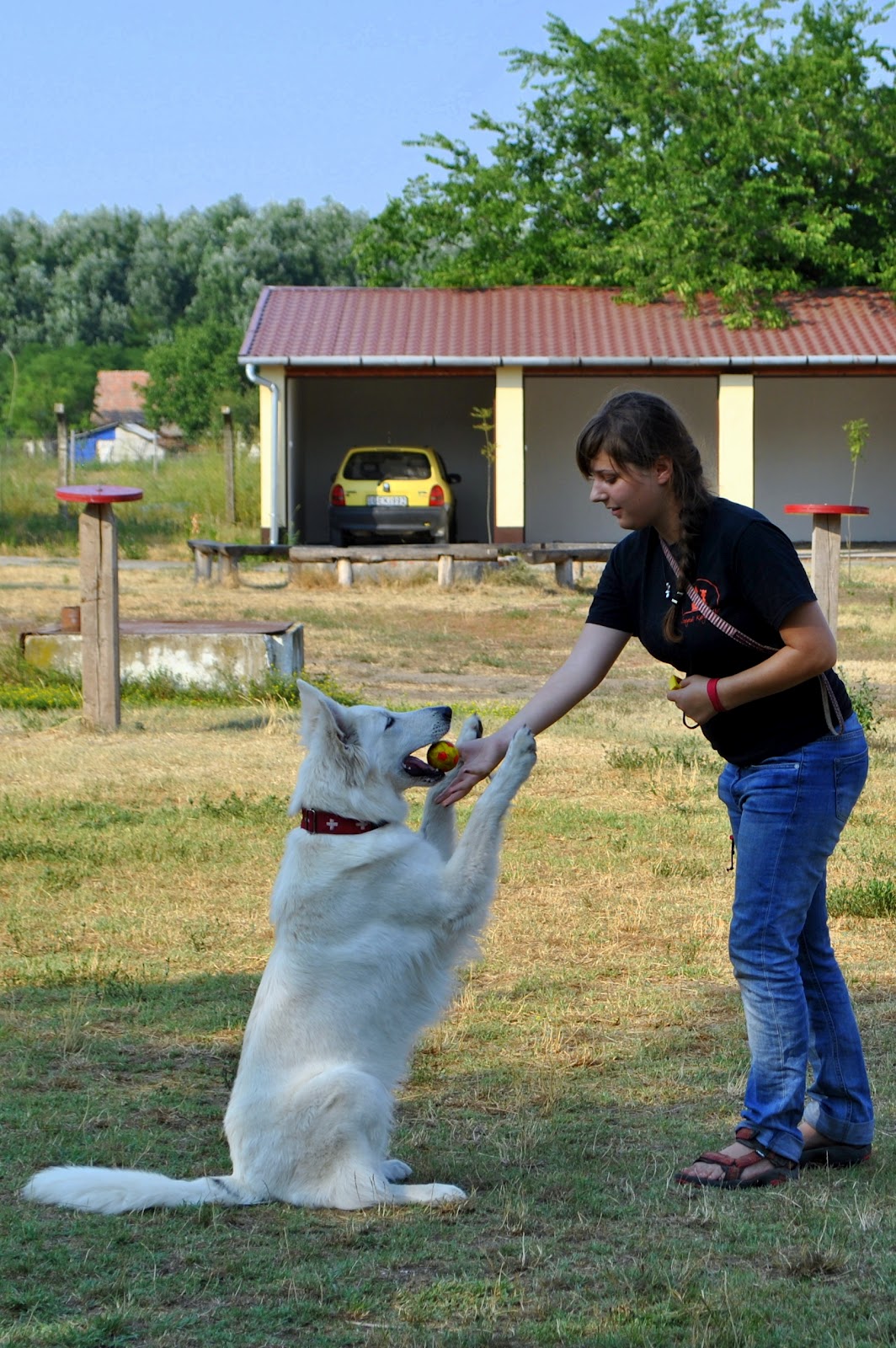 A főpróbán nem tudtam részt venni, ami a fellépés előtti csütörtökön volt, csak a vasárnapi klub alkalmával. Meg voltam magunkkal elégedve, a kutyám figyelt rám, trükköket tudta. Jó hangulatú gyakorlás volt a nagy meleg ellenére. A hét eltelt és igen, elérkezett a fellépés napja. Azt beszéltük meg, hogy Mórahalmon a körforgó röszkei lehajtójánál találkozunk, nem volt sok idő mire megérkezett mindenki és mehettünk a helyszínre. A Zöld Közösségi Ház és Erdei Iskola adott helyet a szegedi Rotary Club által szervezett Nemzetközi Nyári Tábornak, melynek keretében 10 szerb, 10 román, 10 magyar nemzetiségű gyerek élvezhette az iskola vendégszeretetét.