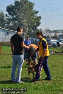 Vizsga, 2012.10.28. szél, eső, Szeged és a Taft még mindig tart…lehetne ez is, de ehhez még hozzájött a 3°C hőmérséklet és a vizsga napja, mely egész kemény megpróbáltatások elé állította mind a gazdikat, mind a kutyákat, és mind minket, oktatókat, bírót. A legszebb az egészben, hogy a vizsga előtti nap kivételével, szikrázó napsütés, korántsem őszi meleg jellemezte a napjainkat, így ne lepődjön meg senki, ha pólós rövidnacis ruházattal felfegyverkezett emberekről lát képeket… 🙂 Ahogy a mondás tartja, a kutya bármilyen időjárásban kell, hogy tudja a feladatát.