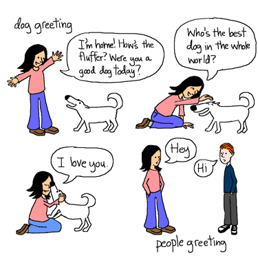 Az egyik legfontosabb dolog, amit ha valaki munkahelyre viszi kutyáját, fel kell ismernie, hogy nem mindenki szereti a kutyákat. Van aki fél tőlük, van aki utálja őket. Ezt a kutyák különösen megérzik, főleg a félelmet. Tudom, mert Jamie is furcsán viselkedik a félős emberrel. Megugatja, olykor megmorogja (elmondások alapján) a reszkető embert. Ilyenkor gyors közbenjárás szükséges, kutyát gyorsan beengedni magam mellé, és beinvitálni az embert. El kell fogadni, hogy nem mindenki szereti a kutyák közelségét, és gyorsan fel is kell ezt ismerni, mert senki sem szeretne konfliktust kedvence miatt.