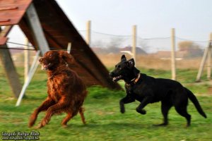 Egy közös elengedés következett, amikor is a kutyák megtalálták játszópajtásaikat, indult a kergetőzés, futkározás, ugatás. Persze ez néha feszültséget is szült… Próbáltam rendet tartani a pályán, de annak nagysága, a kutyák összevisszasága megnehezítette ezt, ilyenkor Gabi jött a segítségemre. Szerintem még mindig elsőosztályúak vagyunk a pályarendfenntartásban 🙂