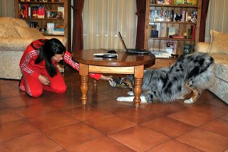 Valamint megvalósíthatjuk azt is, hogy leülünk a földre térdünket felhúzzuk. Kutya egyik lábunknál, játék a másik lábunknál. Meglebegtetjük a játékot az alagútban, felkeltve ebzetünk figyelmét. Vigyázat, gyors kutyáknál szélsebes klikk kell!!!