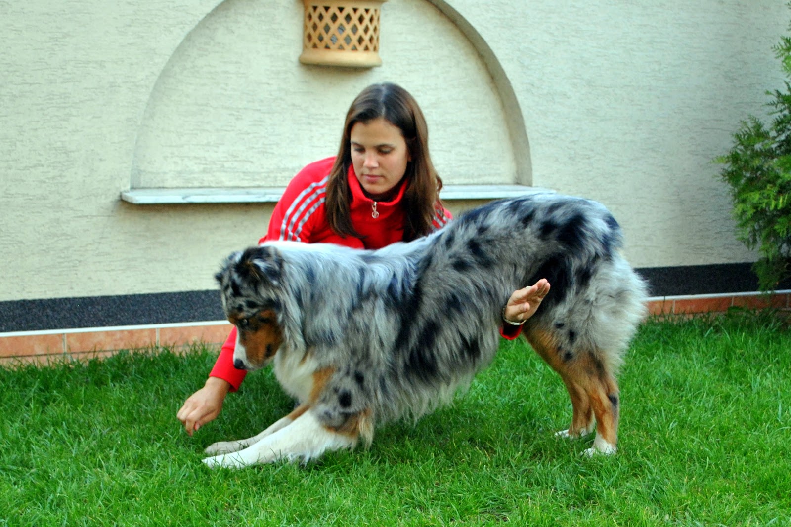 Szóval alapállás: kutya áll, karocskánkat a pocijához tesszük, aztán kiadjuk a “fekszik” vezényszót. A karunknak az a szerepe, hogy megakadályozza, hogy a kutya egész teste a földre kerüljön. Mehet a klikk-kaja, aztán az ismételgetés!! Kellő mennyiségű sikeres hajolgatás után jöhet a vezényszóval “nehezített” változat elővétele. Majd lassacskán növelhetjük a távolságot a karunk és a blöki hasa között, így nem érzi, de tudja, hogy ott van az a mankó. Ha nem hibázik akkor el is vehetjük, de azért ne álljunk fel egyből pl egy kis méretű kutyánál, szépen lassan szoktassuk hozzá a távolsághoz (mármint a karunk és pocakja közötti távolsághoz).
