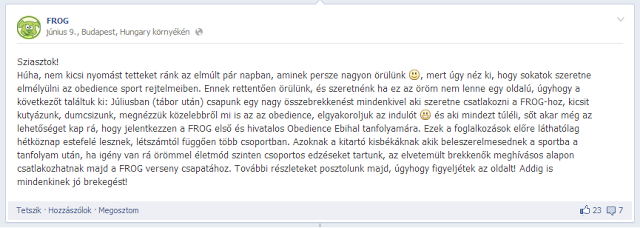 Na de térjünk vissza a lehetőség felkínálkozására, az ugyanis akkor történt, amikor megláttam ezt a postot a FROG oldalán: