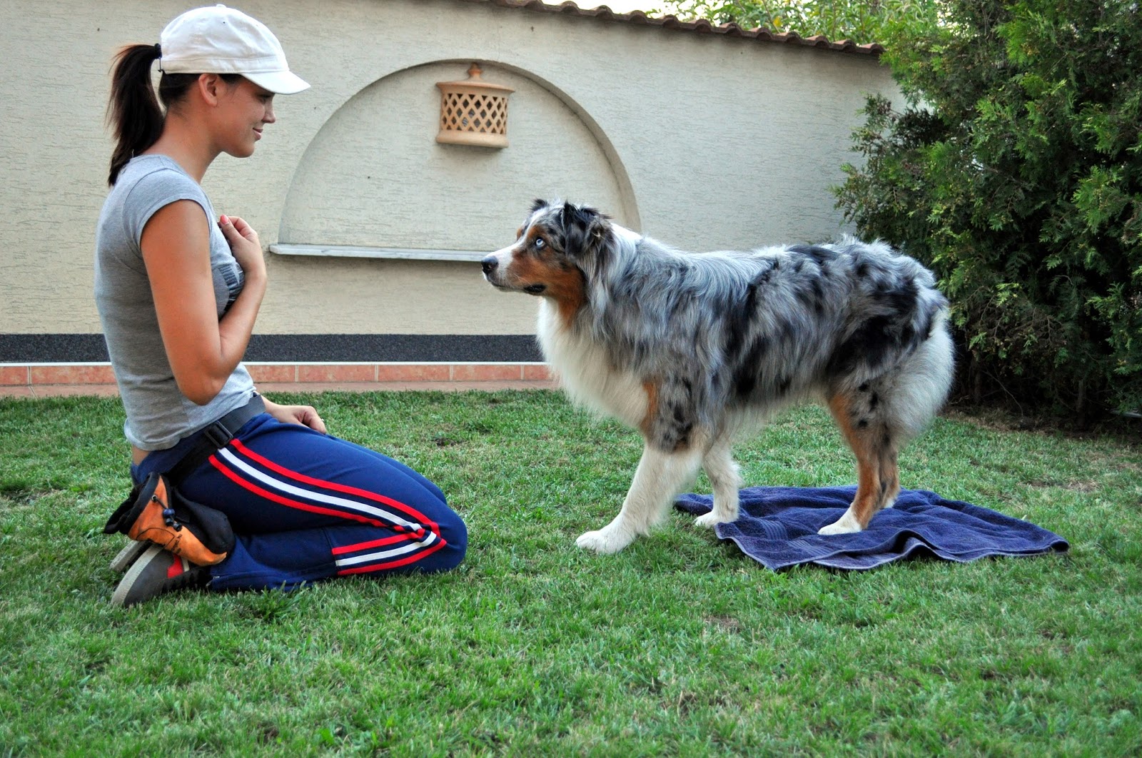 A másik változat, ami inkább a célra tartást kaphatná címként. Ehhez helyezzünk le egy törölközőt, vagy bármi tárgyat, ami elkülönül a környezettől. Lehet ez egy párna, egy takaró, stb… Ennél a feladatnál a lényeg, hogy a kutya először megértse, hogy az aktuális földön lévő tárgyon tapicskál, az biza jó. Miután ez megvan már csak a távolsággal kell játszani. 🙂