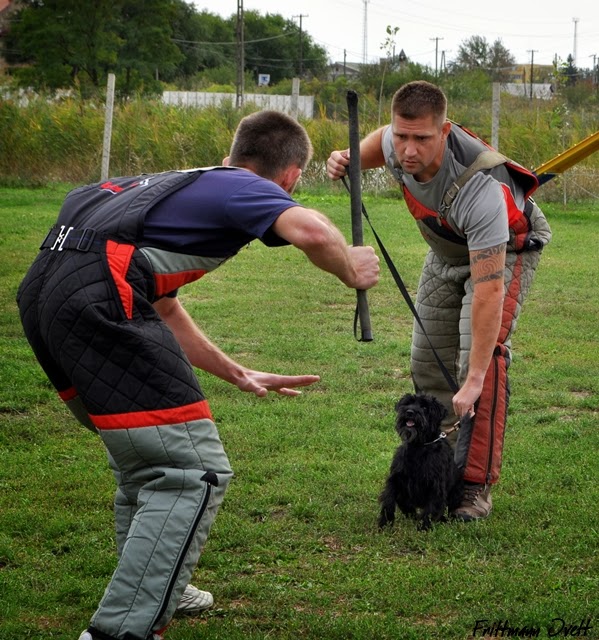 - Elhangzott, hogy a hagyományos módszernél a segédek sokszor úgy kerülnek be a pályára, hogy ráadják a ruhát és “menj, csináld!” mondattal felküldik őket a pályára. Azaz nincsen előképzettség – “töltelék embernek” is hívják őket, előnyük, hogy hitelesen tudják előadni azt, hogy félnek, és igen jól tudják kapkodni a lábukat, ezáltal a kutyáknak remek lehetőséget nyújtanak.