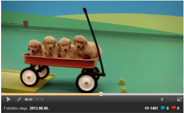 Erre a reklámra, most a közzététel előtt találtam rá!!!! Purina ez is, és erre nem tudok mit mondani, mint hogy shrek macskásan csillogó szemekkel néztem végig kétszer, igen rögtön kétszer. Na, ez az ami reklám, furfang, kis dominó effektus, boldog, tettre kész kutyák, és a Purina cukiságai. Mire ezt kitalálták a kreatívok!!! Biztos előtte volt a dominó guiness rekord kísérlet valamely verziója, mert úgy gondolom az tuti ihlető volt. A kutyák nélkül ez a reklám egy rakás kaki lenne, de velük!!! Közreműködésük elengedhetetlen, csóva, frizbi elkapás, laszti elkapás, és beletétele a “helyére”, mind mind olyan dolog, ami wow, a mi kutyánk is meg tud csinálni, és mi Gazdik is meg tudjuk ezt csinálni. Szóval élvezzétek a reklámot!!