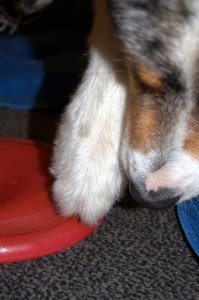 De egyenlőre itt fekszik az, aki nekem A kutya…Pöttyedék… aki beírta magát az aussiek történelmébe, hisz most már fellelhető lesz a törzskönyvekben (egyenlőre 7-ben), áááá még mindig nem tudom elhinni… 🙂