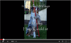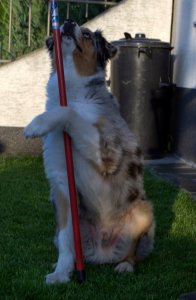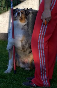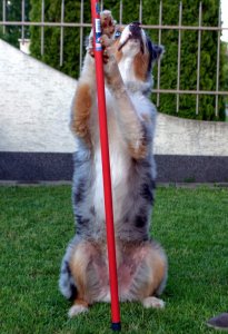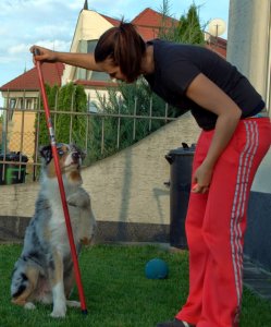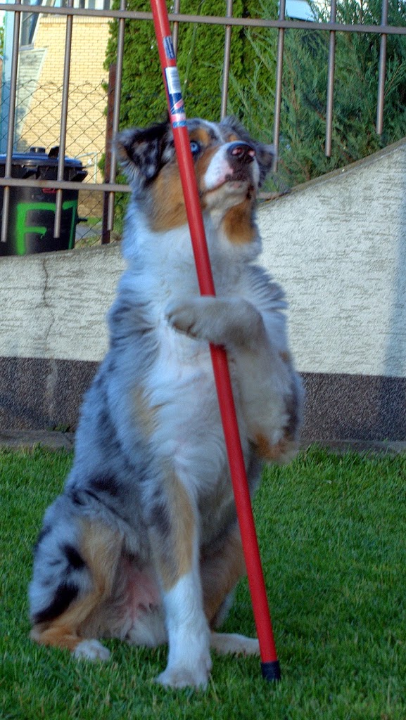 Innen már nem volt megállás, értette mit szeretnék, én meg felpörögve okos kutyámon biztattam, egyre nagyobb kedvvel tolta ő is a mozdulatait. Több se kellett, elővettem a másik csövet, egy műanyagot, ami sokkal könnyebb volt, gondoltam ezt könnyebb megtartania. Így is lett, megtartotta, kitartotta a pók mozdulatot és kész, Drága kutyám…én voltam kész tőled!!! 10 perc sem kellett a feladathoz, természetesen a későbbiekben használni kívánt vezényszavat is belecsempésztem, ezt majd később pontosítjuk vele.