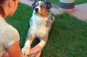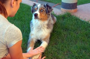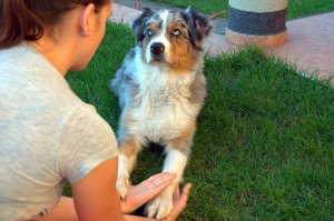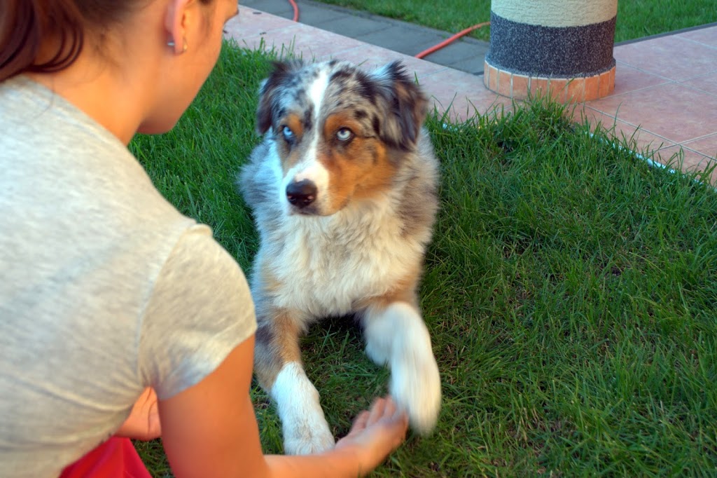 Feladat, amilyen gyorsan tudjuk cserélgessük a lábakat, az én esetemben kezeket. Azaz ha én rakom le, ő egyből mancsoljon rá és ha a másik mancsára teszem a kezem, akkor se essen zavarba és tegye rá a kezemre a mancsát. Azaz legyen egy nagy szendvics mancsokból és kezekből.