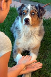 Ismét “touch”-ot kértem Jammtól, ami abból áll, hogy vagy az orrával, lábával meg kell érinteni azt, amit szeretnék, jelen esetben nem szerettem volna, ha a nyálas fejével tapogatja a tenyerem, bár elég sokszor ezzel szembesültem…
