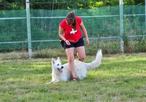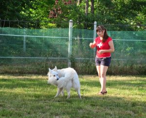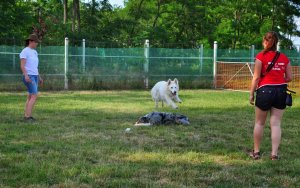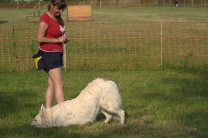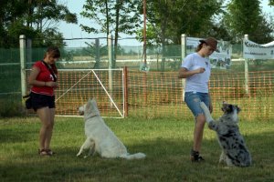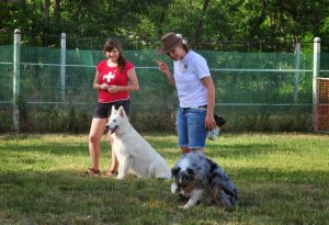 Kis csúszás volt a levegőben, de nem bántam, mert szokták a klímát az ebzetek, míg mi beszélgettünk, megnéztünk egy kezdő engedelmest, egy ovit, amibe Zsuzsi Apaccsal be is csatlakozott.