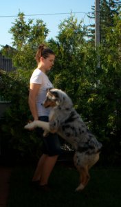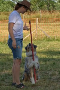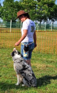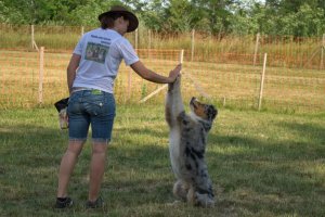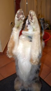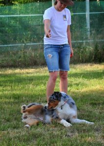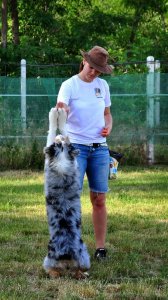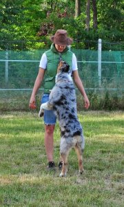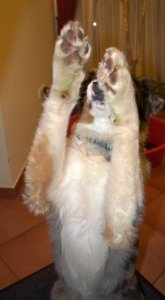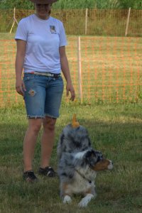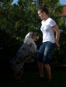 A kezdést úgy terveztem, hogy bevonulunk két oldalról, egy-két trükk kíséretében, majd felállunk a közönségünkkel szemben, bemutatunk pár trükköt közösen, ezek voltak azok a trükkök, amiket könnyen megtaníthatnak kedvenceiknek a Gazdik, mint lábszlalom, kukucs előre, hátra, 8-as, nyuszi, hempereg. Ez mind mind olyan trükk, amihez nem kell különösebb leleményesség, csupán kaja a kézbe, megvezetés és jó időzítés. That’s all 😉