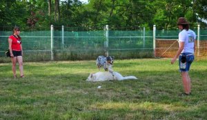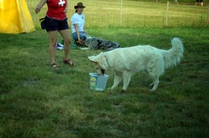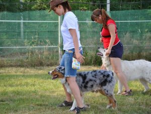 Hátramentünk kicsit elengedni, de a nagy meleg miatt a kutyák keresték a vizet, árnyékot, gyorsan kimelegedtek és mentünk is vissza az árnyékba. Leterített pokrócon üldögéltünk, míg kutyáink lihegtek, kb hasonlón hatott mint a tücsök ciripelése, monoton volt a javából. Itatás, és locsolás többsoron is megvolt, nehogy hőgutát kapjanak… bizony nagyon fontos kutyáink folyamatos hűtése ilyen rendezvényeken.