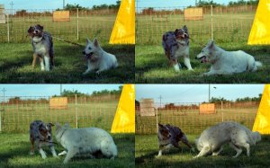 Egymás átugrása… fekvő kutya feje lenttartva… imádat Képet készítette: Tofán Sándor |