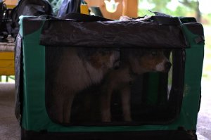 Mindenki lepakolt a filatorigátra, én gyorsan felállítottam a boxot Jamie számára, mert hmmm ismerem elég hevesen tud futni, úszni, udvarolni, kutyázni, macskázni, szóval minden olyan tevékenységet folytatni, amihez négy láb kell és nem sok ész. Így, hogy megelőzzem az esetleges kifulladást, Jammot egy idő után eltettem pihenni. Mindenki, aki érezte már egy kutyabox előnyét ilyen szempontból ámult, hogy nekik eszükbe sem jutott a boksz elcipelése. Én örültem az eszemnek.