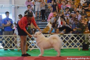 Utánunk Kitty és Blue ment fel a pályára, a munkájukat ugyanúgy, ahogy Zsanettékét Alonsoval nem láttam. Próbáltam agyamat kikapcsolni, egy gyönyörű kutya gyönyörű munkájára értem vissza, ő nem volt más, mint Amy. Áááá, kész voltam tőle olyan bájjal dolgozott és annyival alacsonyabb ösztönhőmérsékleten, hogy egyszerűen csodálatos volt nézni. Úgy követte le Móni testjeleit, mint egy álom. Nem esett nehezére körbemenni, jobbra, balra menni, csinálta azt, amihez nagyon értett, hisz az ösztöne vezérelte. Móninak kellett hasonló iránymutatás, mint korábban nekem (és még néha most is) így Petra vezette Mónit, akiket Amy követett le.