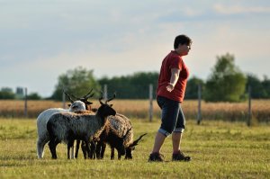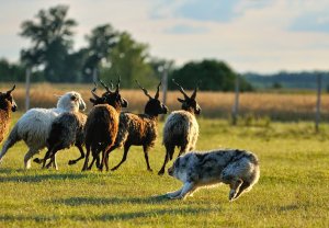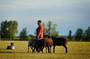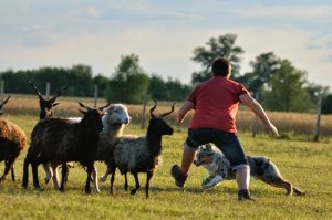 Az én nagy bajom a rackákkal való terelést illetően, hogy kiba nagyok azok a szarvak!!! Ami nem jelentene gondot, de a kutyám nem épp lágyan terel, hanem úgy Istenigazából… gyorsan, határozottan, tele ösztönnel. Ehhez társulnak hozzá azok a göcsörtös hosszú szarvak és elszánt tekintetek, mert hiszem, hogy egy két fekete példány extrán köcsög és direkt döfköd… 😛 Amikor épp a rackák „támadását” akarom kivédeni egyszerűen elvesztem a kontrollom a kutyám felett, ami nem jelent semmi gondot, csak ugatást, végeláthatatlan keringést a birkák körül.
