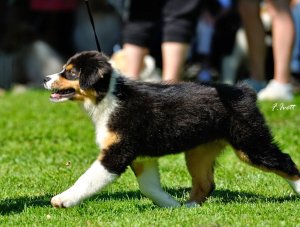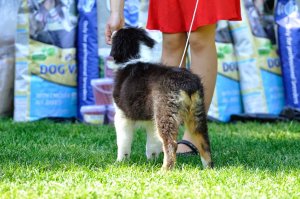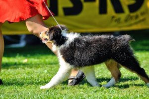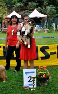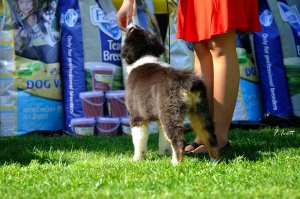 Más tészta volt bent megtartani. 🙂 7 baby volt a BIS-ben, két collie, két aussie, és két corgi, csak az aussieval nem találkozott Susanne Langhorst-De Haan bírónő, akiről kiemelném, hogy mindegyik kölyköt azok nevével együtt hívott ki egy oda visszára, megjegyezte a cuki kölykök nevét. Ilyet sem hallottam eddigi kiállításos életem során, mindenesetre ez nagyon szimpatikus volt számomra. Nova kész katasztrófa volt és én is 🙂 Gondolom virsli illat szárnyalt az egekben és így annyira nem akarta a száraz jutifalatot, kénytelen voltam előkúpászni a megmaradt virslimet, aminek a hátránya volt, hogy Novát még jobban felpörgette, raptorként támadt a virslire, és ezzel együtt a kezemre is. Tele vagyok fognyomokkal. 🙂 Kihívás mindig kell az ember életében bár én jobb szeretek magam által felkészített kutyát bevinni, meg is látszott a munkánkon, mindenesetre örültem, hogy motiváció terén nincs gond a kiscsajjal. 🙂