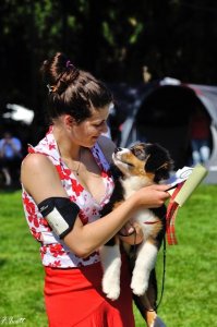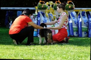 Következtek a babákok, mint Nova a baby szuka, akit Shane-hez hasonlóan Kitty egészen a ring bejáratáig kézben vitt, és csak ott tett le, de a kisasszony úgy lépdelt a ringben, mintha mindennapos tevékenysége lenne. 🙂 Mind állásban, mind mozgásban remekül teljesített, Kitty biztos sokat gyakorolt vele, egy kis profi volt Shane-nel együtt. 🙂