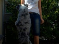 17. trükként a kéz nélküli pacsit, a kezeket fel trükköt vettük át Jammal, kicsit “megizzasztott” a végrehajtási mód, de aztán szépen összehoztuk ezt a Pöttyössel. A mostani trükk lenne a végeredmény, azaz nyusziülésben fel a kezeket és a baing/bájng szóra a kutyám hátára veti magát és igencsak meghal. Persze csak játékból… 😛 A trükk maga úgy…