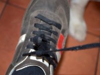 Kicsit összetett trükknek hangzik, pedig korántsem az. Mondjuk az már annál inkább komplikáltabb volt, hogy Jamievel megértessem nem kell letépni a cipőt a lábamról no és a lábamat sem a helyéről. Addig nagy nehezen eljutottunk, hogy meg kell fogni a cipőfűzőt… no de melyiket… Igyekeztem úgy kötni a cipőt, hogy egyértelmű legyen, na juszt nem…