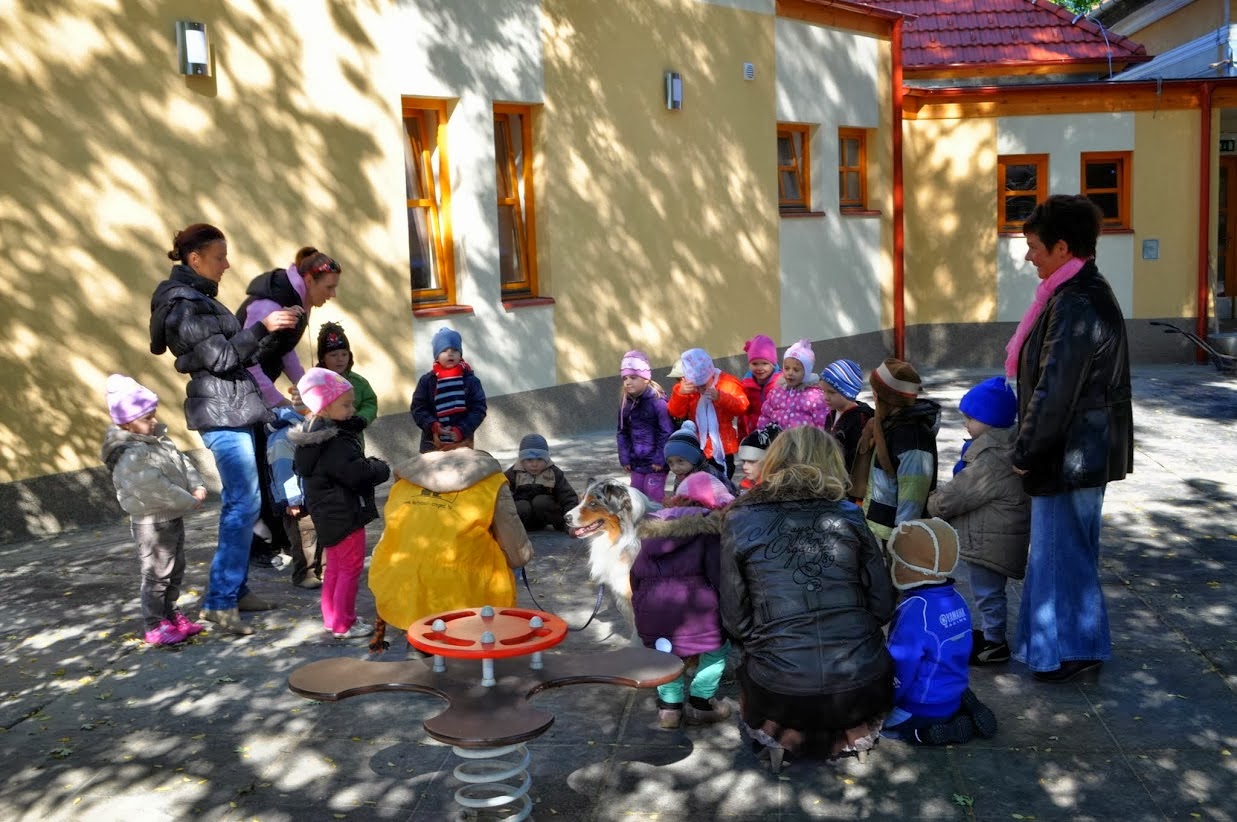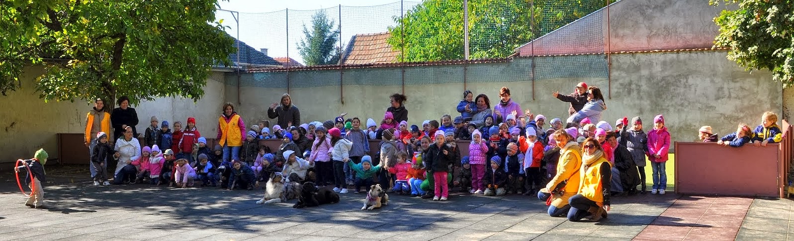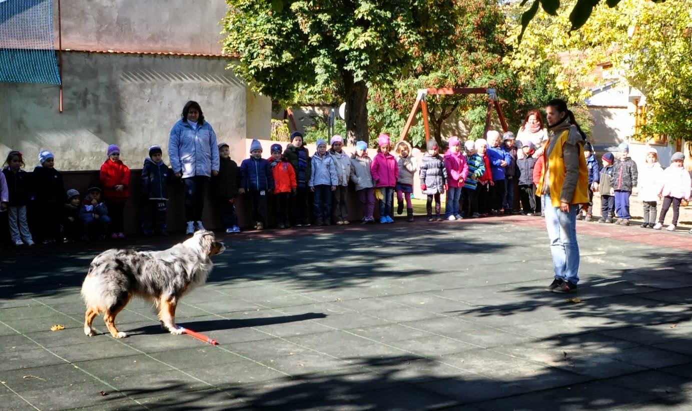 Programunk átcsúszott 10:30-as kezdésre, de csillogó szemű gyerekek szép sorban állva, óvónénik kíséretében gondolom nem haragudtak ránk. Épphogy lepakoltunk, már Panka kezdte is a bemutatásunkat. Minden kutyához hozzáfűzött egy kis érdekességet, nekem nagyon tetszett, mindenki kilépett és bemutatott egy trükköt kutyájával.