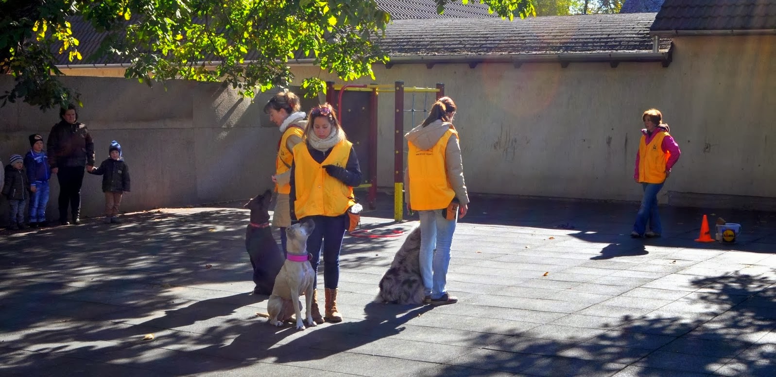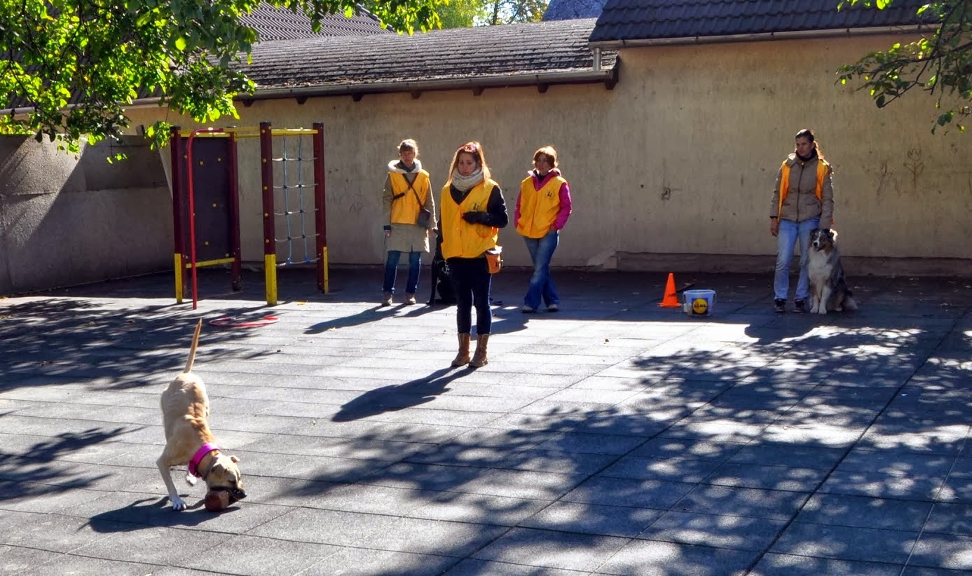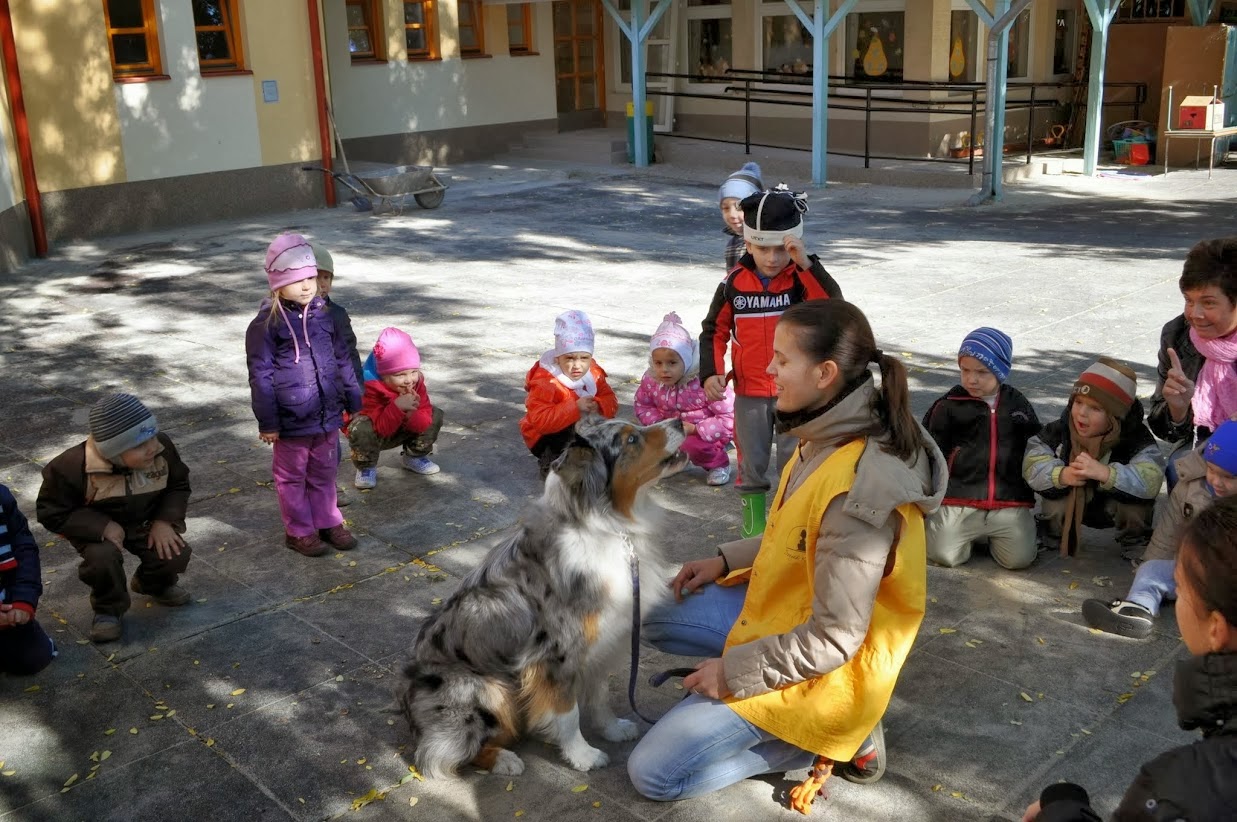 Programunk átcsúszott 10:30-as kezdésre, de csillogó szemű gyerekek szép sorban állva, óvónénik kíséretében gondolom nem haragudtak ránk. Épphogy lepakoltunk, már Panka kezdte is a bemutatásunkat. Minden kutyához hozzáfűzött egy kis érdekességet, nekem nagyon tetszett, mindenki kilépett és bemutatott egy trükköt kutyájával.