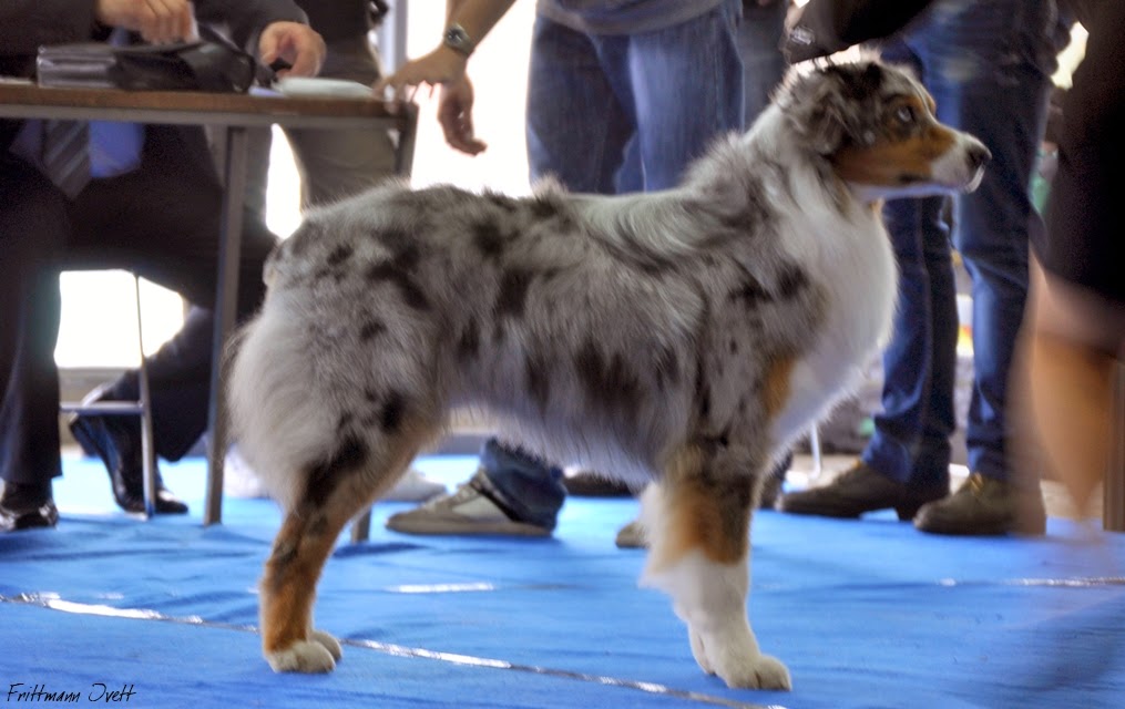 Míg ott álltunk Líviáéknál odajött hozzánk egy ismerős arc, méghozzá Marko Mangry’s, aki saját maga is aussiekat tenyészt, és felvezeti őket profi szinten. Megkérdezte, hogy Jamie nyerte-e a fajtagyőztes címet, mondtuk neki, hogy nem, a kutya, itt van mellettünk, benézett a ketrecbe, megkérdezte Líviéket mi a törzskönyvi neve és utána velünk folytatta. Nem ismerte meg Jamiet, jó mondjuk nem sokszor látta, az ő kennel nevét is megkérdezte, és utána Esztire terelődött a szó. Kérdezte itt van-e, mondtam nem, ő most boldogan babázik. 🙂 Kicsit beszélgettünk Esztiről, és hogy nekem Jamie az egyetlen kutyám, de vásárlás előtt állunk, mert szeretnénk bővíteni a családunkat, falkánkat. Kérdezte, hogy megyünk-e Zágrábba klubkiállításra valamint CACIB-ra, kedvem lenne amúgy, mert még nem jártam ott, de valószínű nem jutunk el. Viszont nagyon jól esett, hogy megdicsérte Jamie-t, komolyan őszintének tűnt, nem az a jaj cuki kutya, megnézte, megtapogatta, stb… Elismerés volt nekem aznapra!! 🙂 Ki gondolta volna, hogy Markótól kapom meg azt, amire aznap valahogy nagyon vágytam. 🙂 Köszönöm Marko!! 🙂