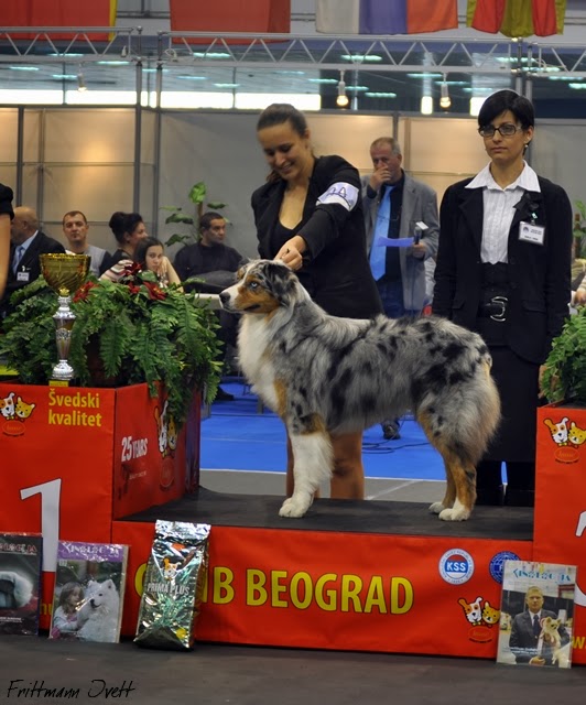 Orsiék berobogtak Líviék után a ringbe. Majd a kötelező standard és fogvizsgálat után, jött az áttapogatás majd egy-két kör és egy oda-vissza. Ismét beállítás. Jamie állt mint a cövek, ahogy azt elvártam tőle, míg a bírálat folyt. A bírálatot szerb nyelven kaptuk. 🙂 🙁