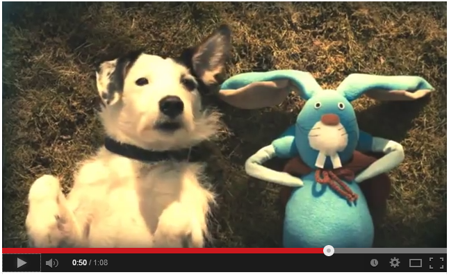 Vidámabb verzió egy beagle személyében és gondolataiban tárul elénk. Nem kellett más, mint egy középen ücsörgő édes pofijú eb, háttérben matató gazda, aki a kint heverésző játékokat pakolja vissza a helyükre. Igaz a kutya kicsit másképp látja ezt. Nekem különösen tetszik a narrátor hangja, tényleg olyan mintha a kutya sajátja lenne. 🙂 Vajon a kutyák tényleg így látnak bennünket. Amellett, hogy vicces a produkció, az üzenet tényszerű és egyenes: “Egy ember a legjobb dolog, ami megtörténhet egy menhelyi kutyával, légy te az az ember. Fogadj örökbe.”